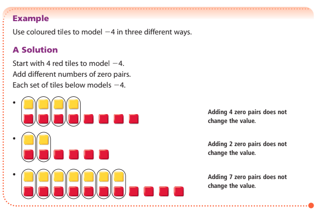 Draw yellow or red tiles if you find it necessary to model each integer.