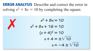 Alg462 Quiz; Sovle be Square Roots, CTS, Quadratic