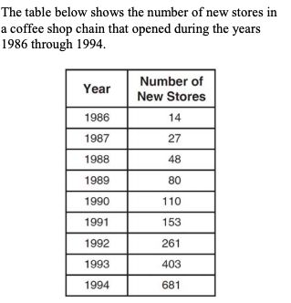 Do an Exponential Regression (stat, calc, 0) to predict the number of coffee shops using the number of years that have passed.