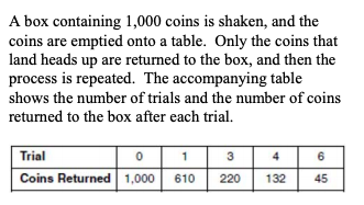 Use the data entered into L1 and L2, using trial number to predict the number of coins returned to the box.