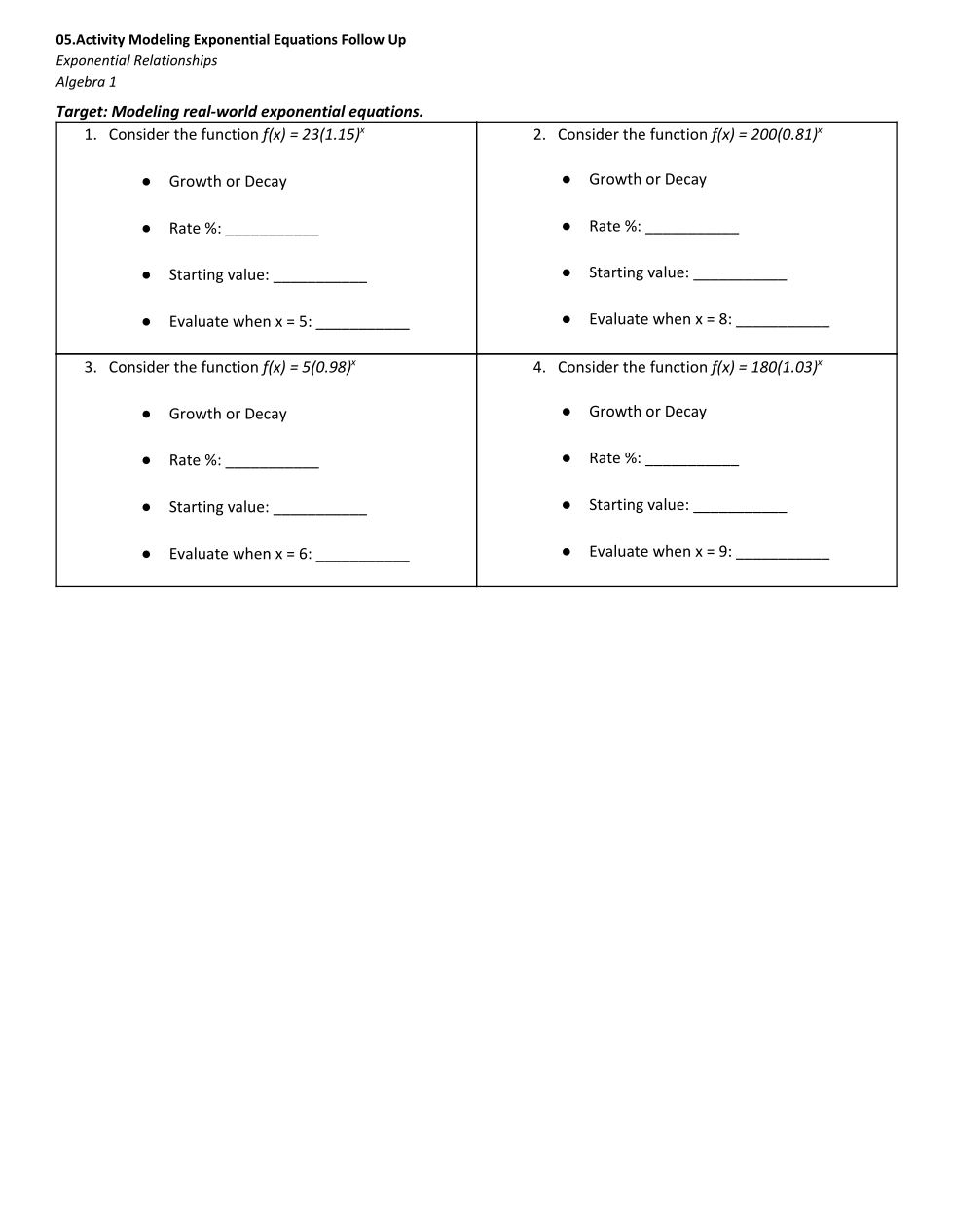 05.Activity Modeling Exponential Functions