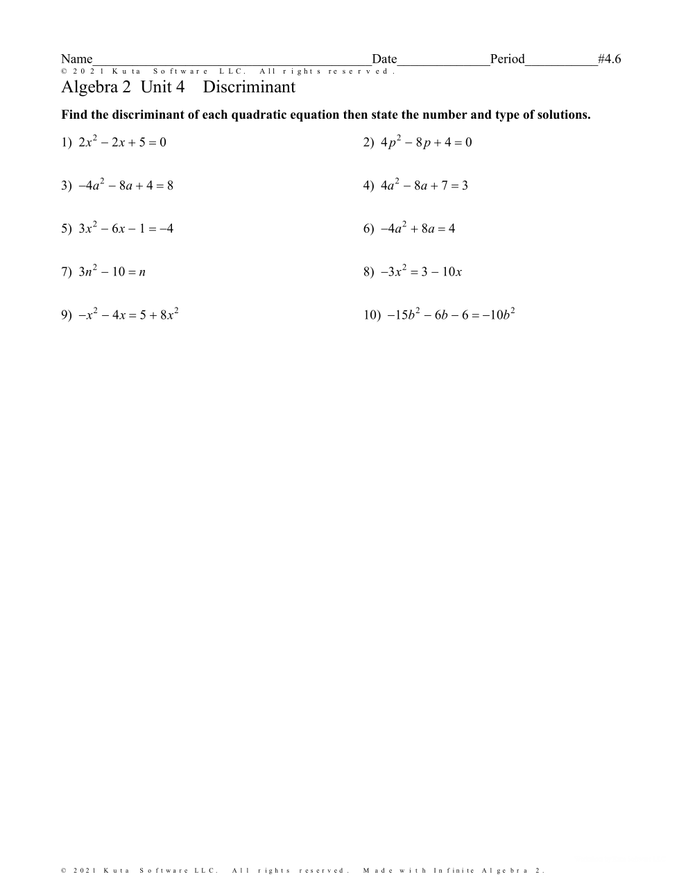 Find the discriminant. Then determine the number of real zeros. Separate your answers with a comma.