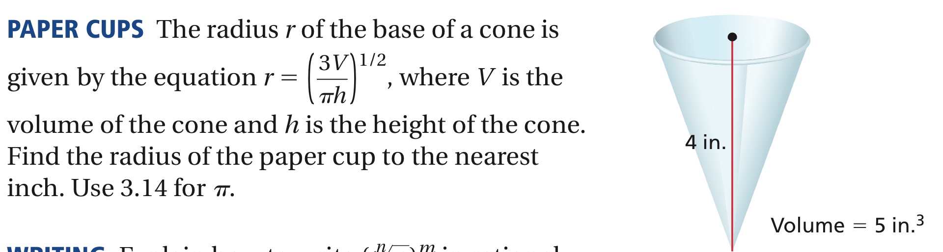 Read the info and then find the radius of the paper cup to the nearest inch.