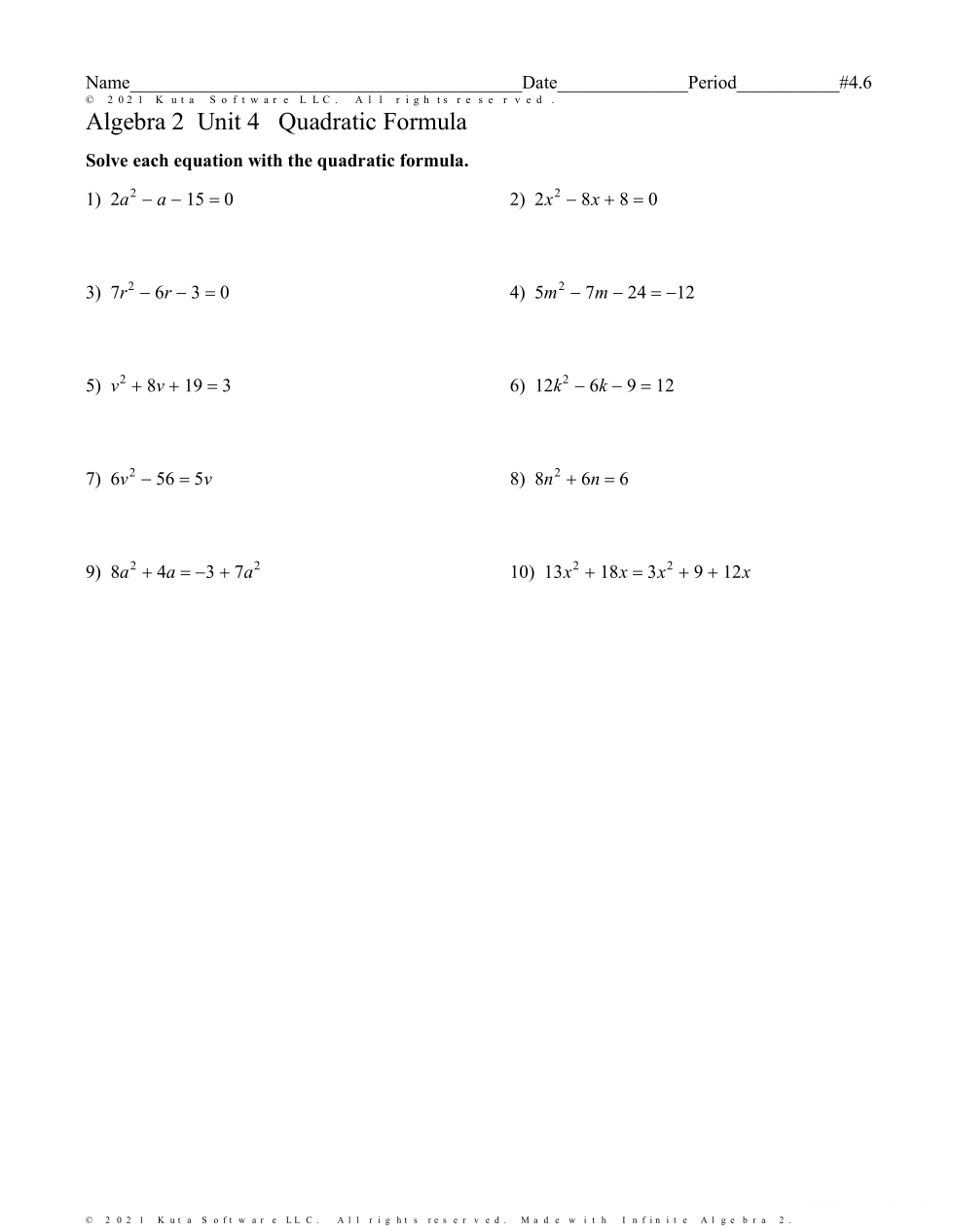 4.6 Quadratic Formula