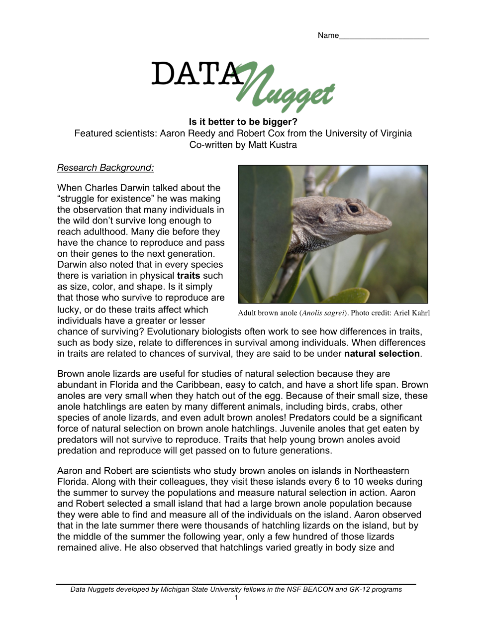Brown anole lizards are useful for studies of natural selection because