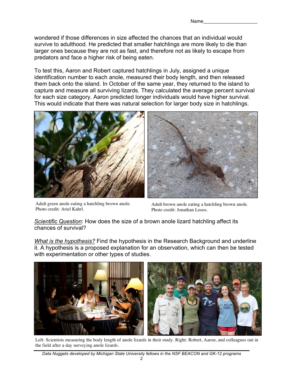 Juvenile anoles that get eaten by predators will not survive and reproduce.