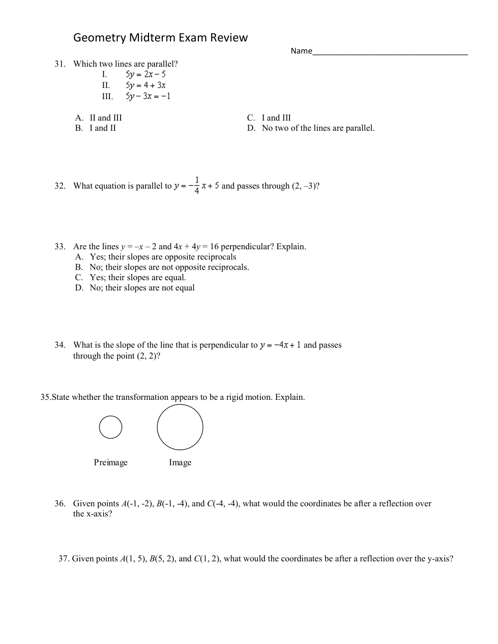 Which lines are parallel? (Hint: solve all equations for y and compare slopes!!)
