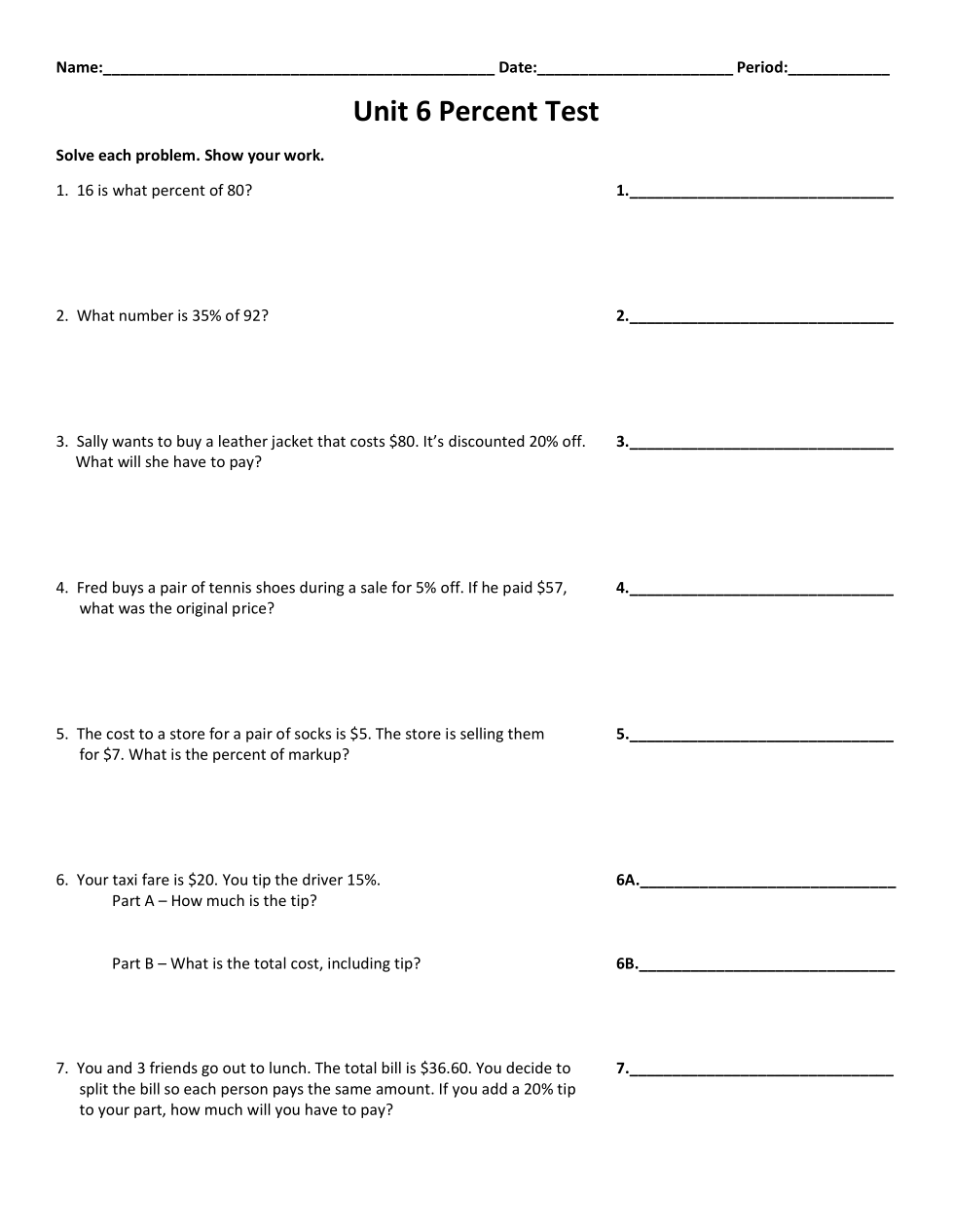 Your taxi fare is $20. You tip the driver 15%. How much is the tip?
