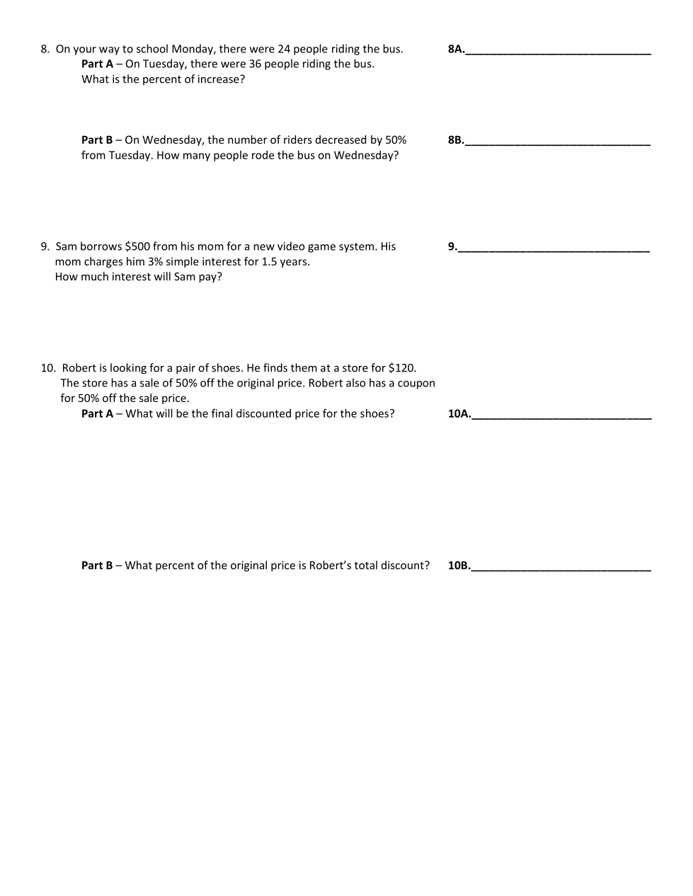 Using the information from question 10A, what percent of the original price is Robert's total discount.