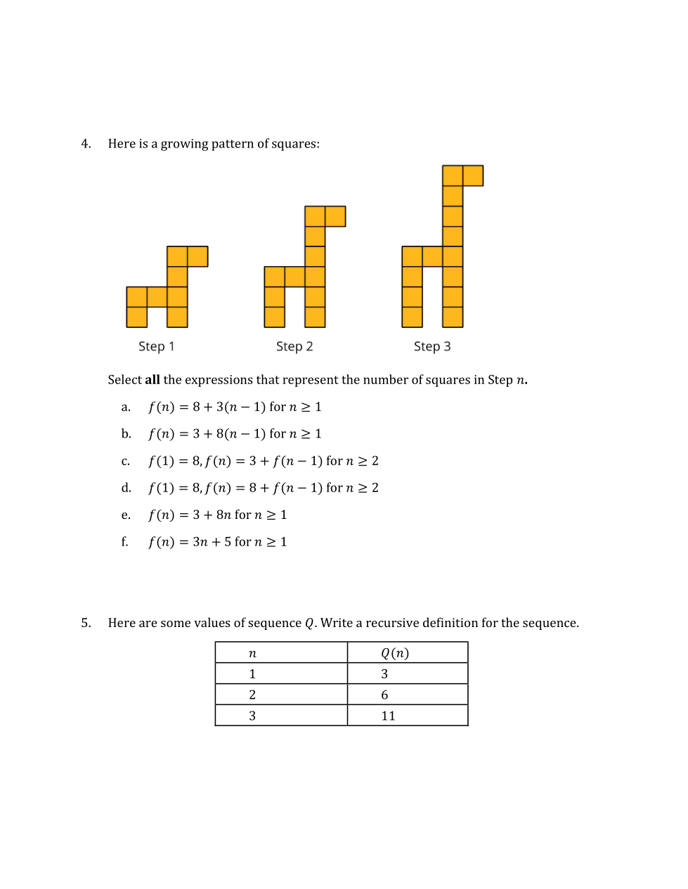 Given that Q(1)=3, which of the following is the recursive definition for the sequence?
