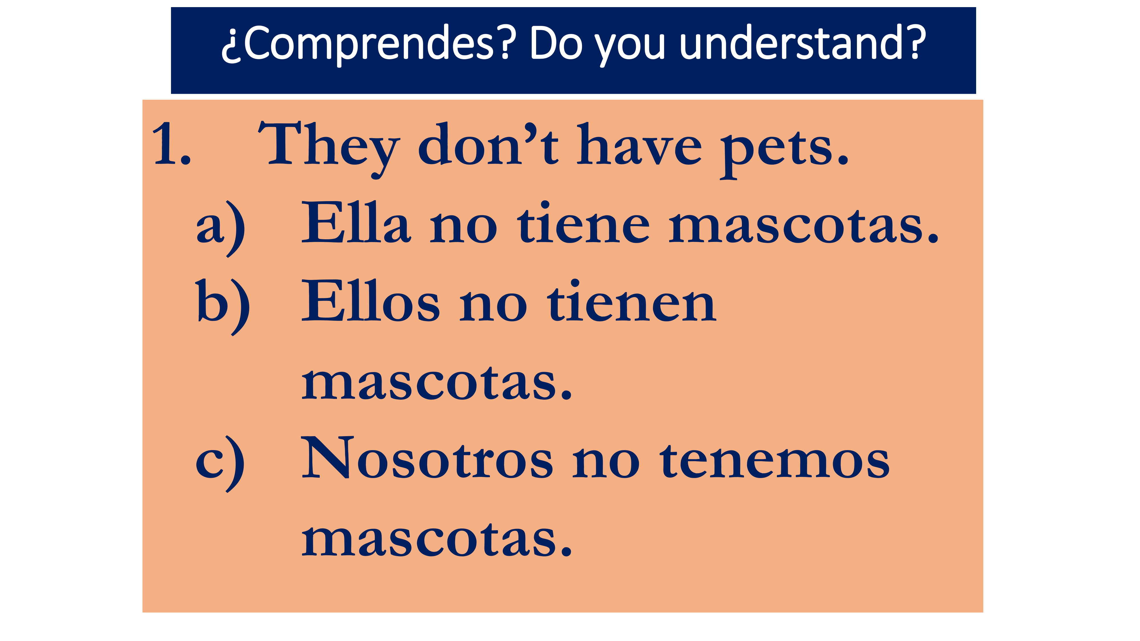 I can present LIMITED information in a format of memorized phrases and isolated words but, I cannot respond to the question in Spanish I would revert back to English.