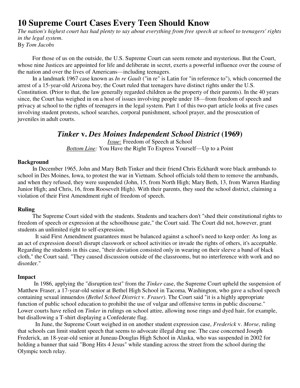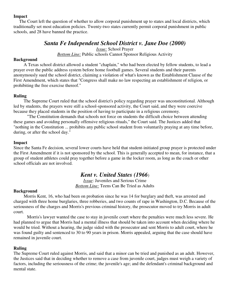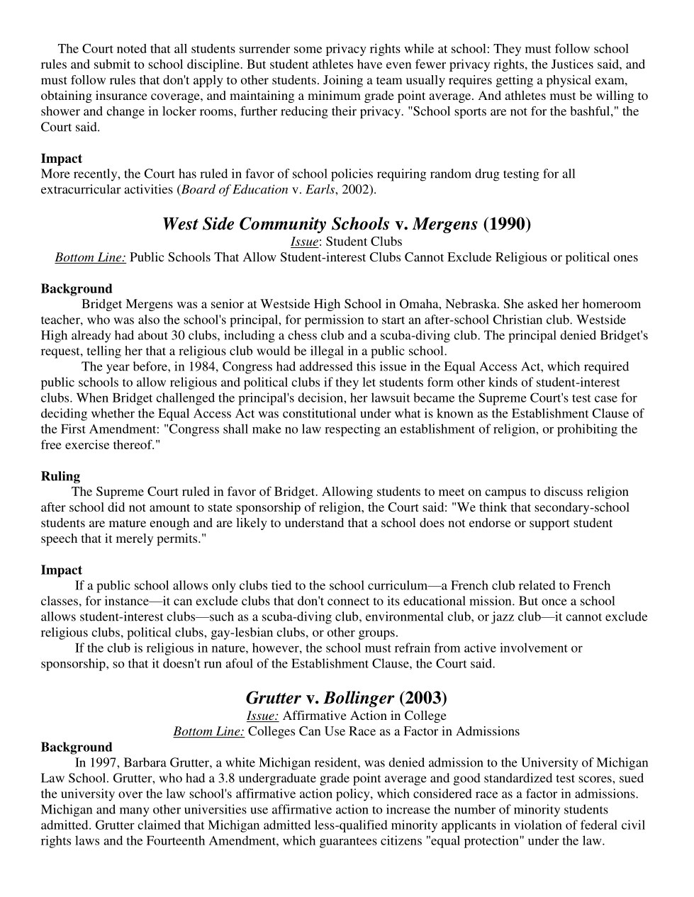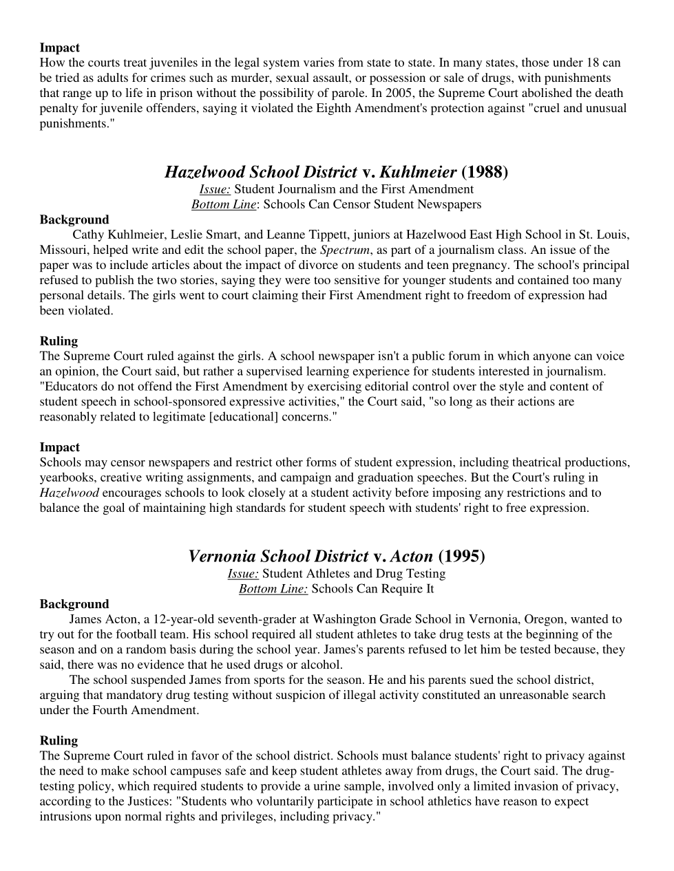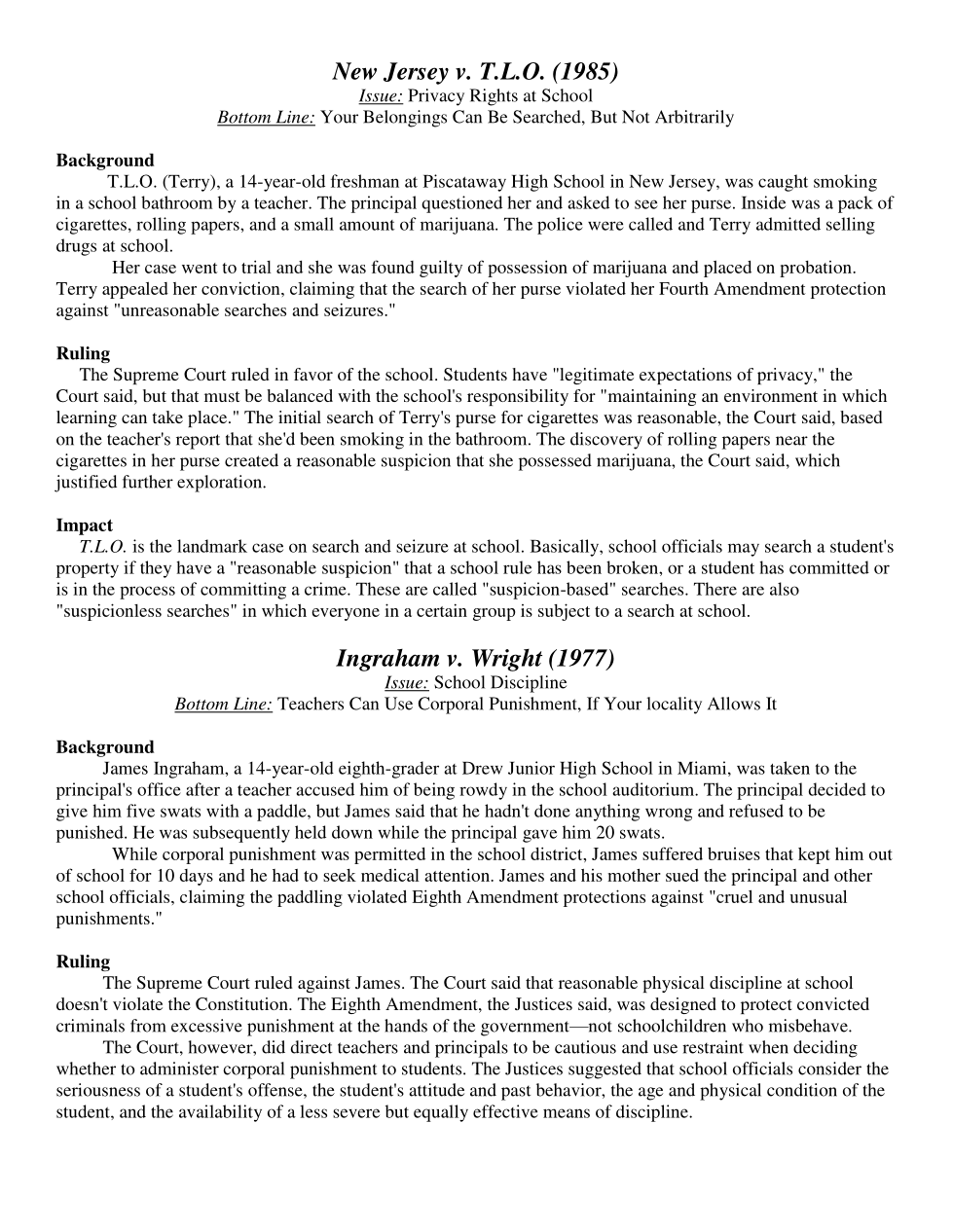 In your opinion which one of these cases has the most impact on YOUR school experience. List the the complete case heading, and thoroughly explain how/why this case affects you so much. I expect 4-6 sentences for this answer.