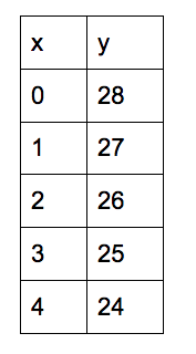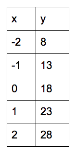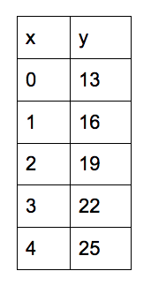 Write the equation represented in the table below.