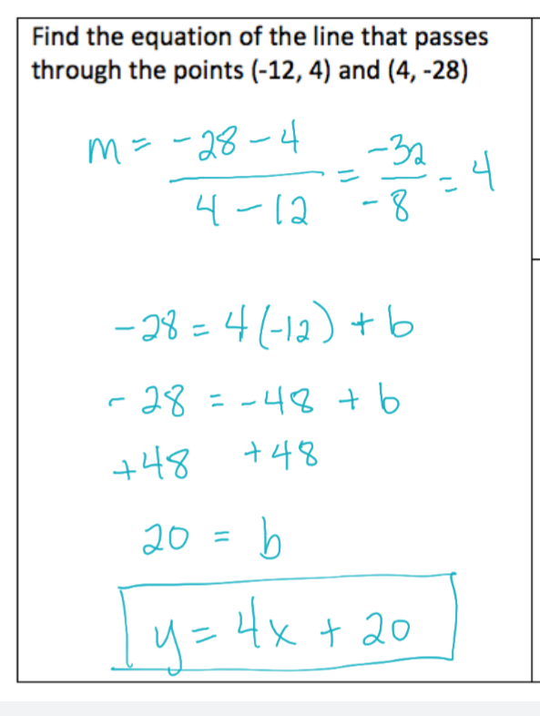 When asked for an equation, it must be in y=mx+b form. For any "Show your work" problems that don't have a box to put an answer, you are expected to show your work and answer on the board.