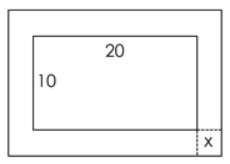 A pool measuring 10 feet by 20 feet will have a cement walkway around it. The area covered by the pool and the cement walkway is 600 square feet. Write an equation to represent the area of the pool and walkway.
