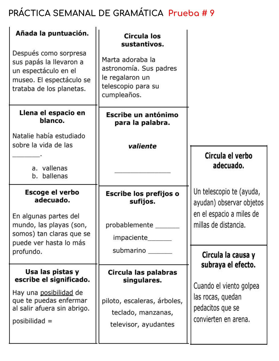 PRÁCTICA SEMANAL DE GRAMÁTICA Prueba # 9