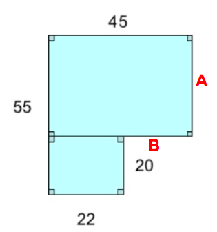 Look at the figure below. Find the missing side A and B to find the perimeter of the entire figure. What is the perimeter of the figure below?