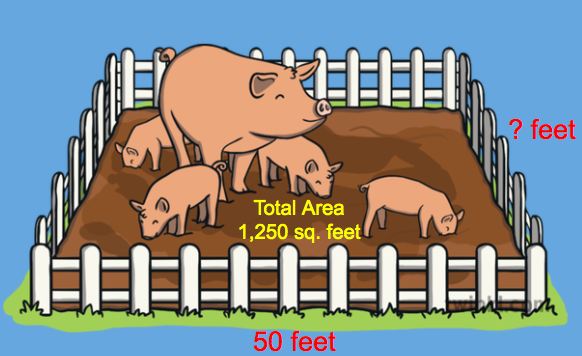Farmer Brown wants to fence his pigpen. The pigpen's total area is 1,250 square feet. It's length is 50 feet. How many feet of fencing will he need to surround the entire pigpen?