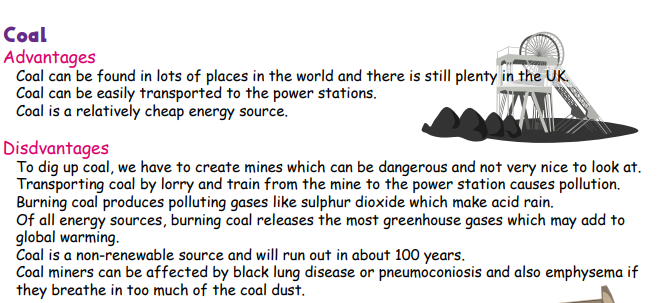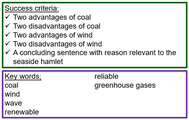 A small seaside village plans to generate all the electricity needed for the houses using either coal or wind.Evaluate the advantages and disadvantages of using each method (4 marks)++ Conclude, with a reason, which approach the hamlet should use (2 marks)