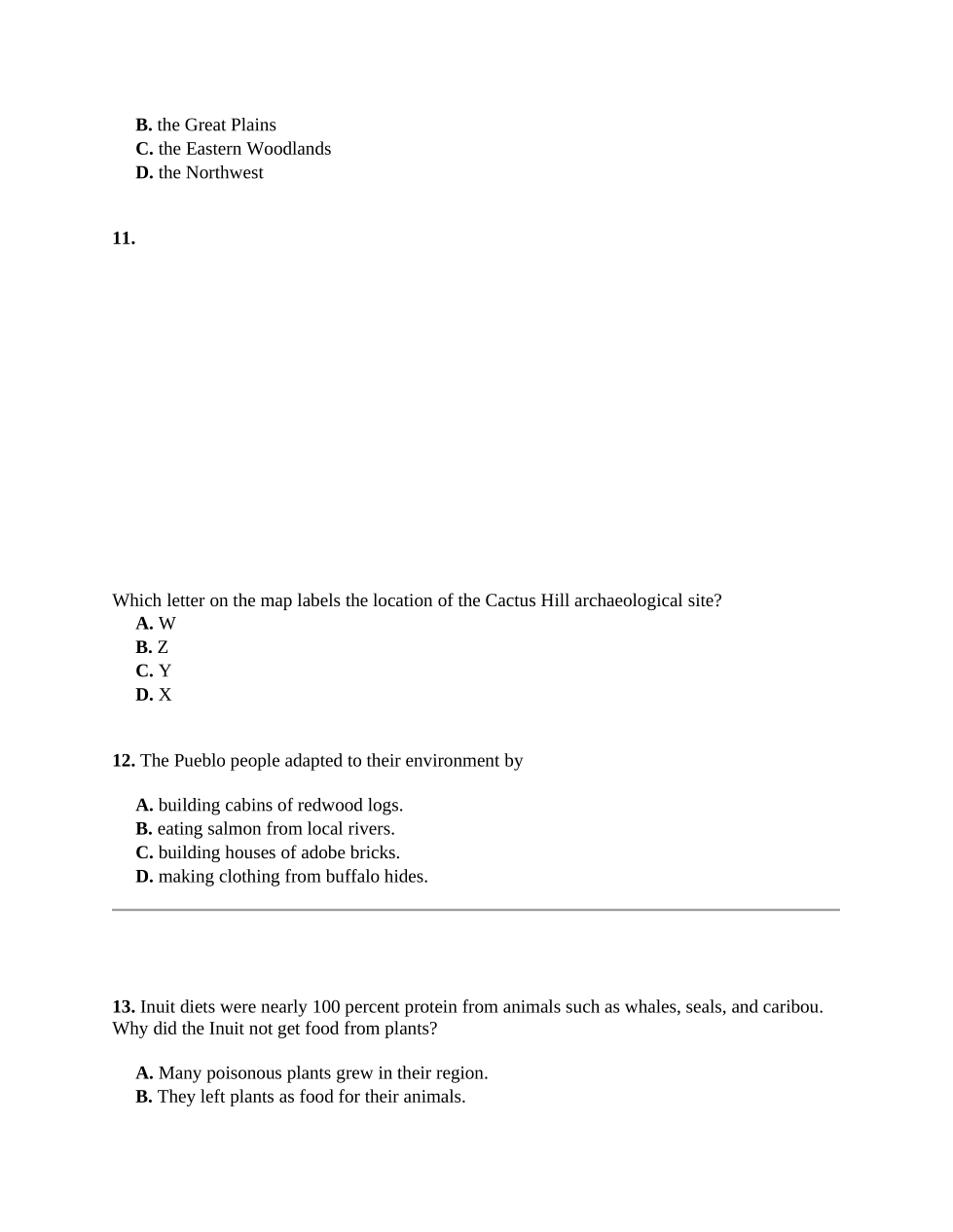 Which of the areas on the map represents where the Pueblo Indians lived?