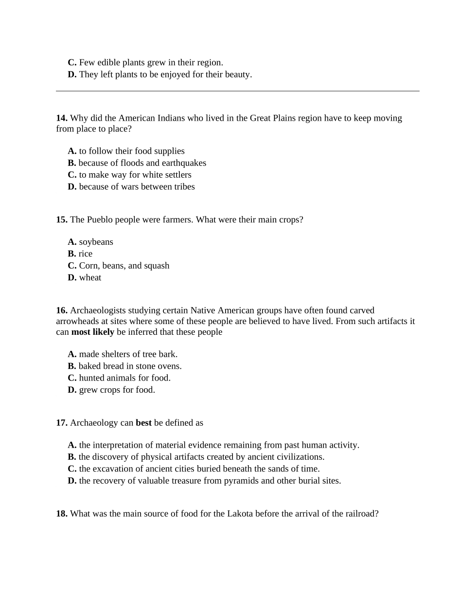Why did the American Indians who lived in the Great Plains region have to keep moving from place to place?
