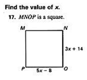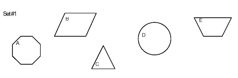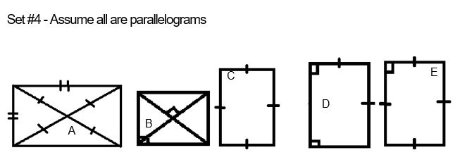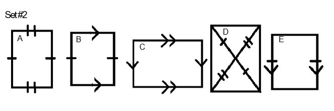 Directions: Look at each set of figures. Which shape would you exclude from the rest? Assume all figures are not drawn to scale so look at the markings on the figure to help you.