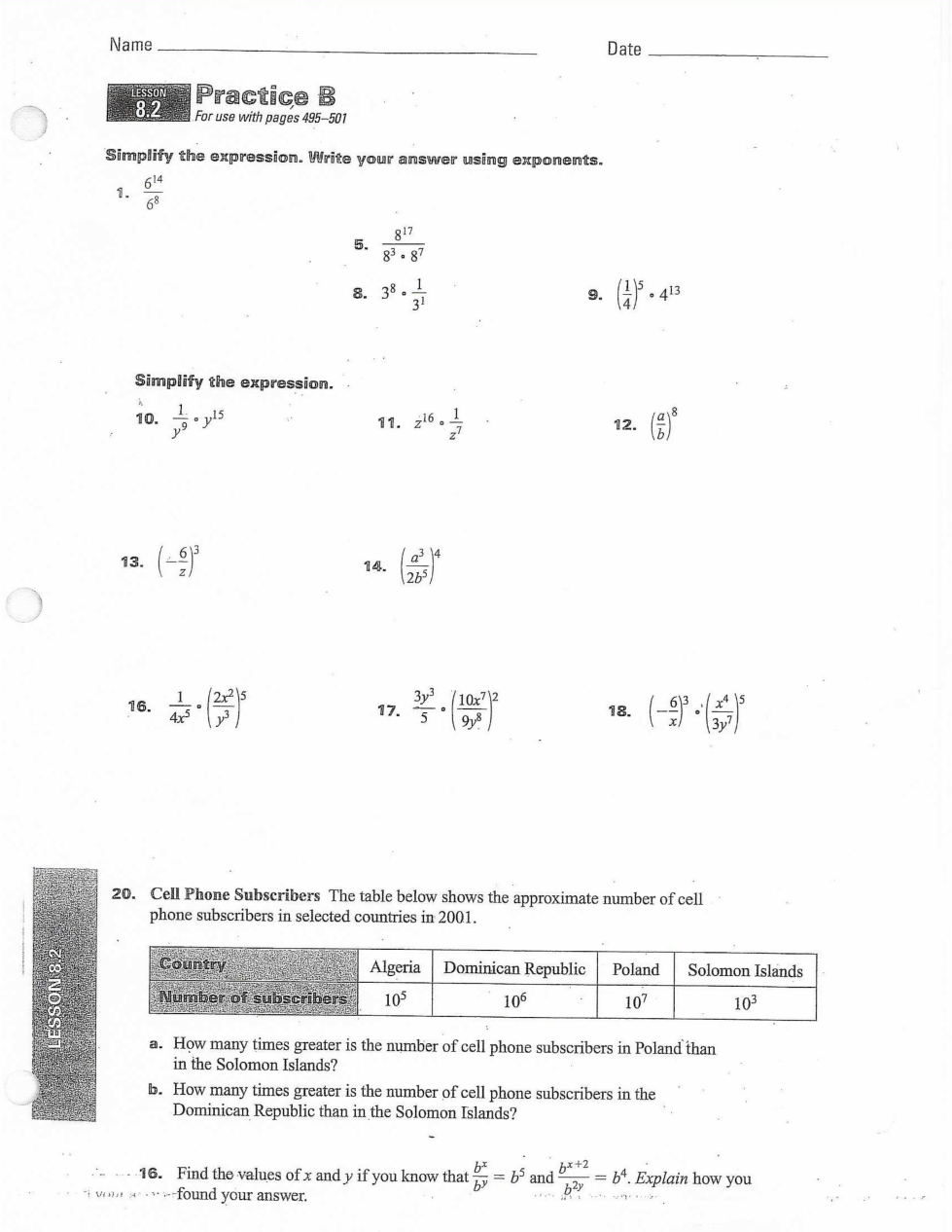 Simplify, only use exponents on variables.