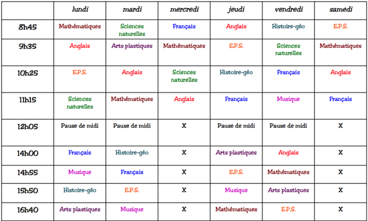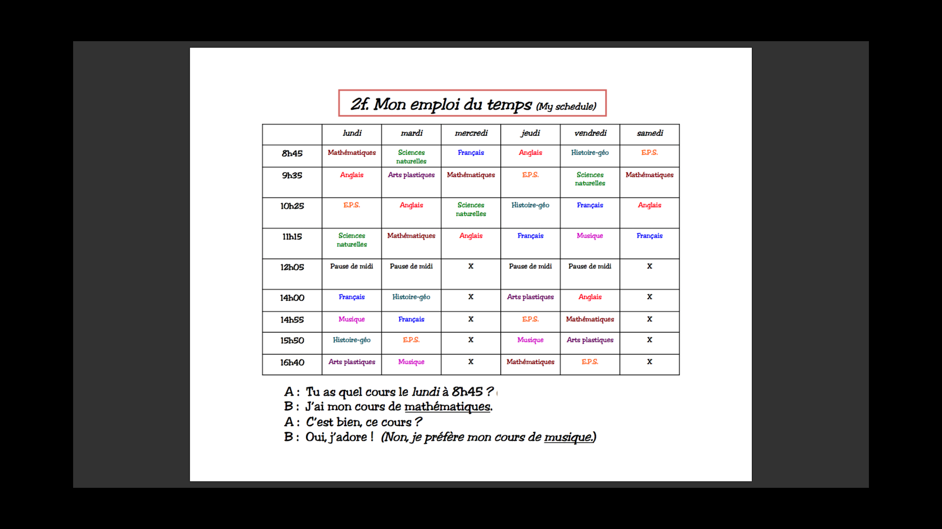 Tu as quel cours le mercredi à dix heures vingt-cinq?