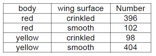 In a final mapping experiment, you cross a true-breeding red-bodied, short and crinkle-winged male with a true-breeding yellow-bodied, long and smooth-winged female.
