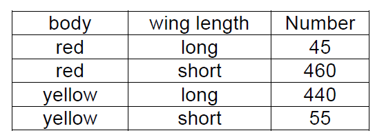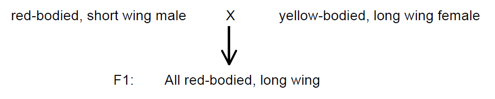 You decide to turn your attention to a different gene, one that controls wing length. This gene has two alleles, L or l where long wings are dominant to short wings. Remember that the red body phenotype is dominant to the yellow body phenotype. You again mate two true-breeding lines: