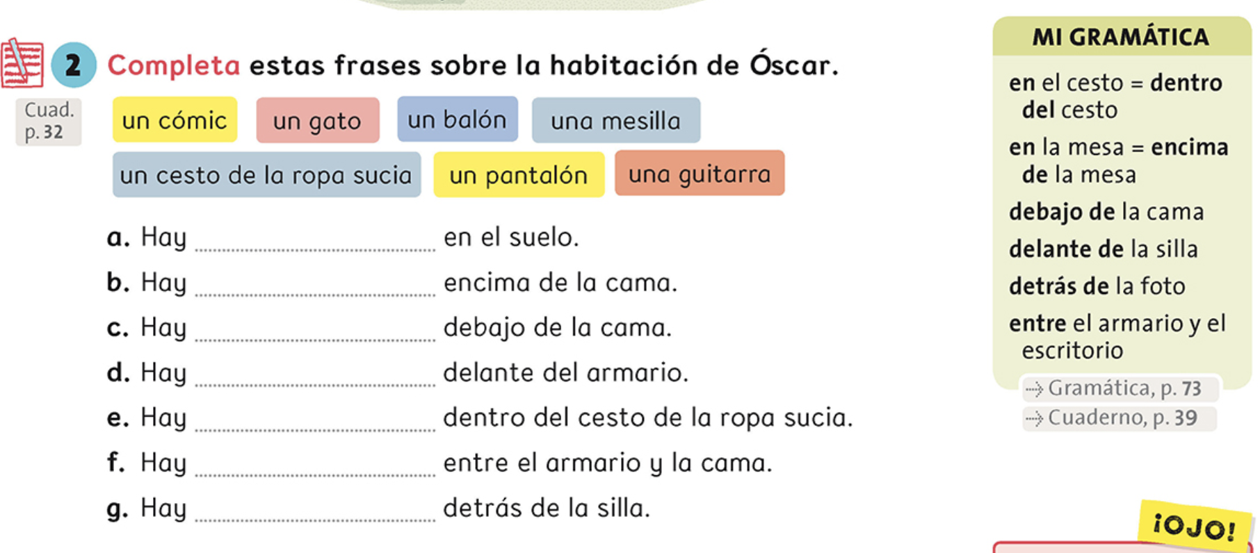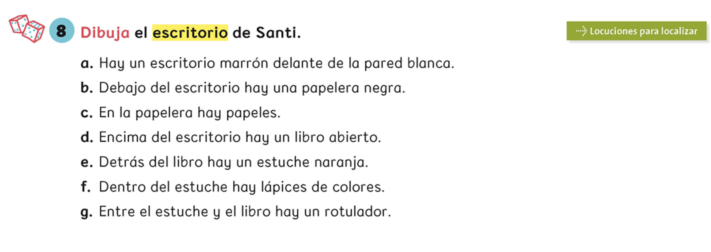 Mira tu escritorio y piensa en 5 frases para describir qué hay en él. Después dibujalo