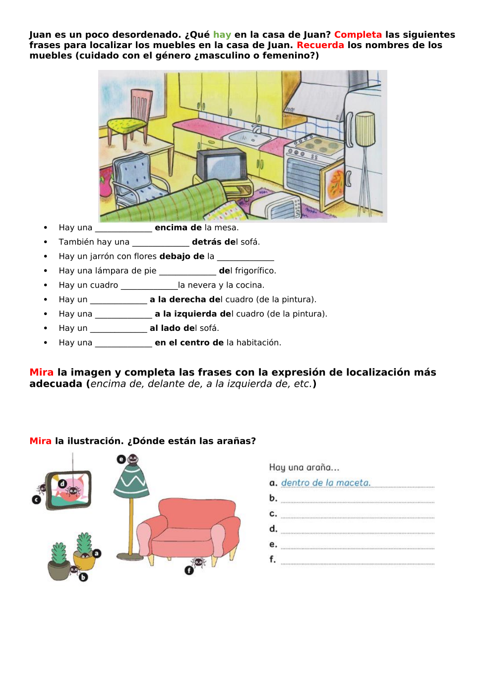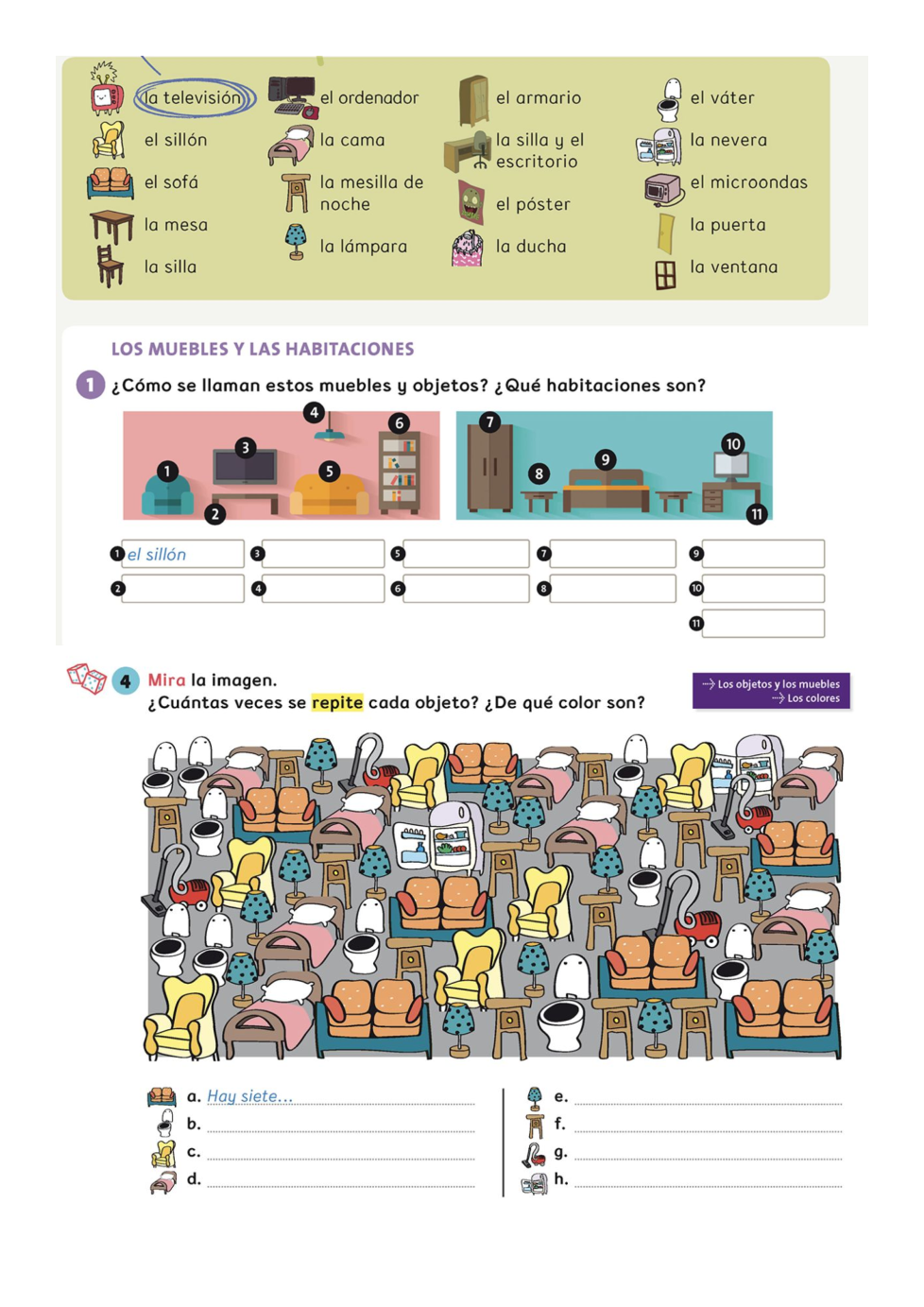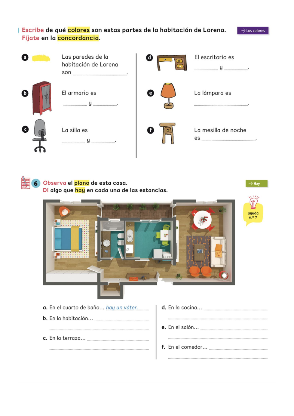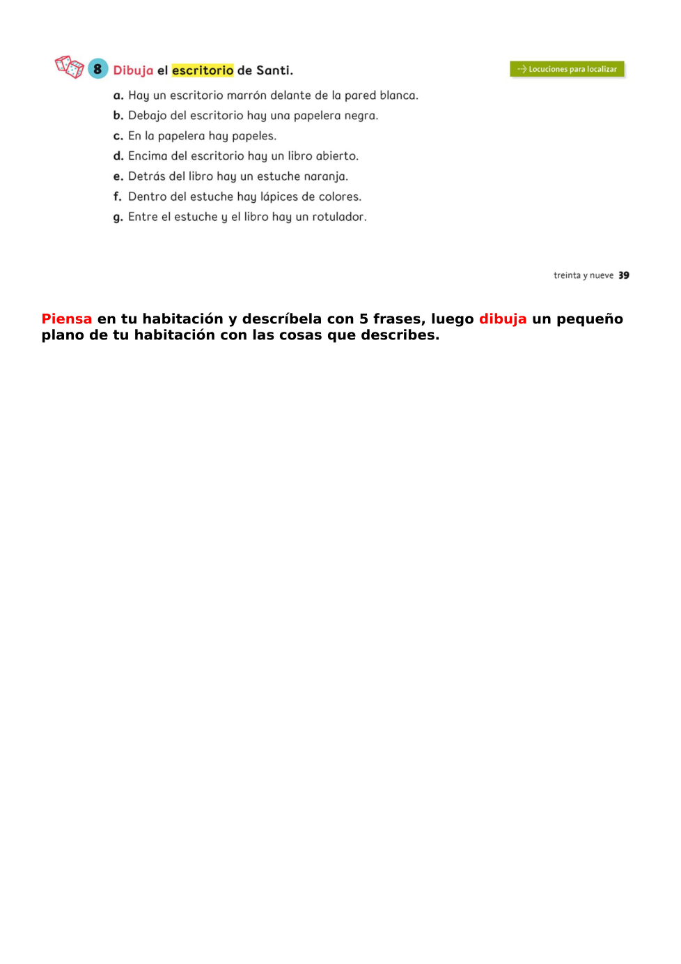 Piensa en tu habitación, escribe 5 frases para describirla. Después dibuja tu habitación con un pequeño plano con las cosas que describes.
