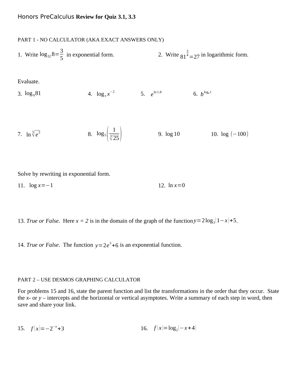 Write the given exponential equation in logrithmic form.**Note use the backslash / key to type a fraction.