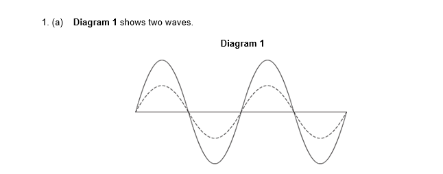(i) Name one wave quantity that is the same for the two waves.______________________________________________________________(ii) Name one wave quantity that is different for the two waves.______________________________________________________________