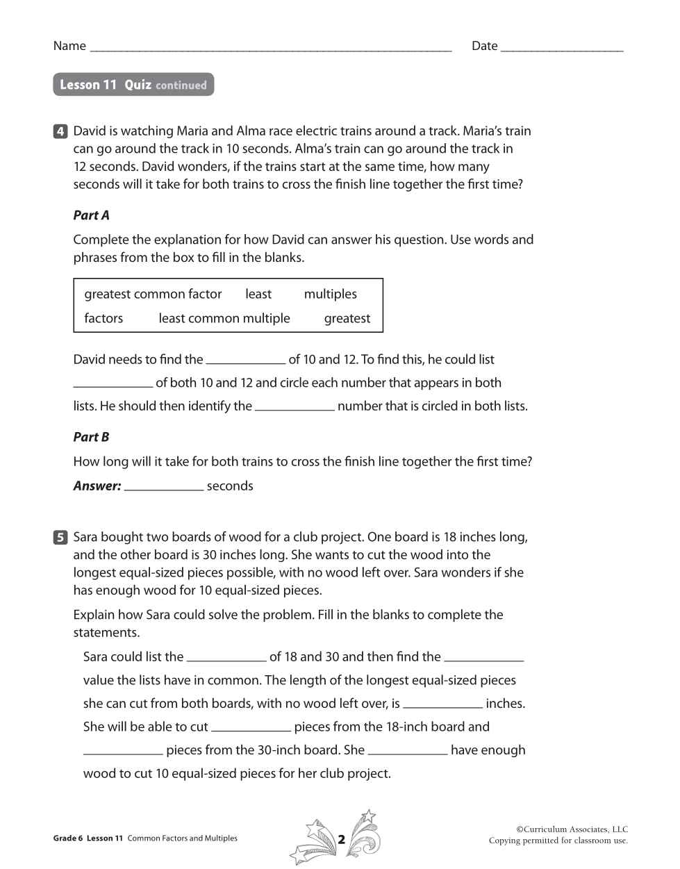 - David needs to find the __________ of 10 and 12.
