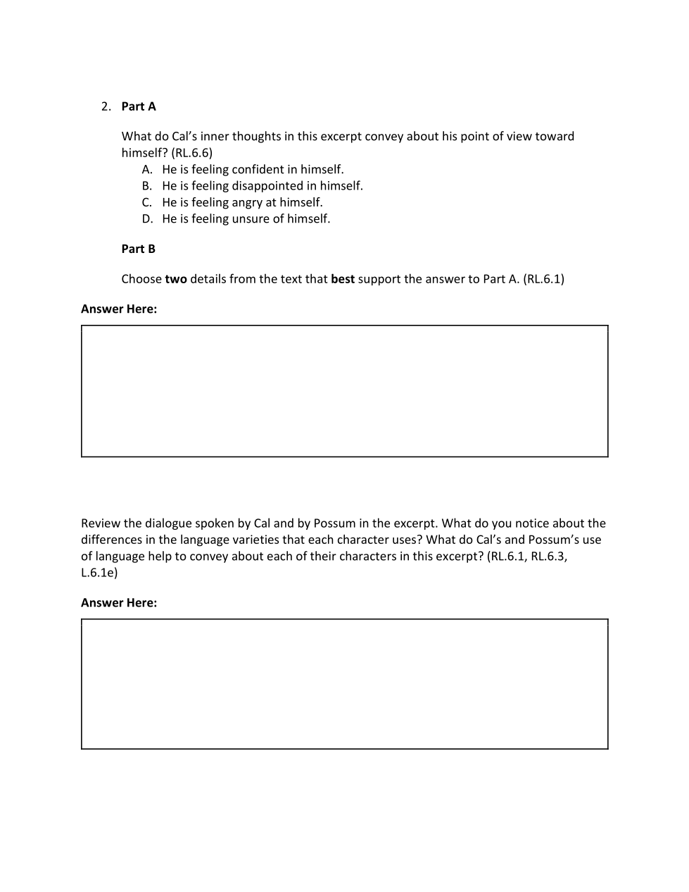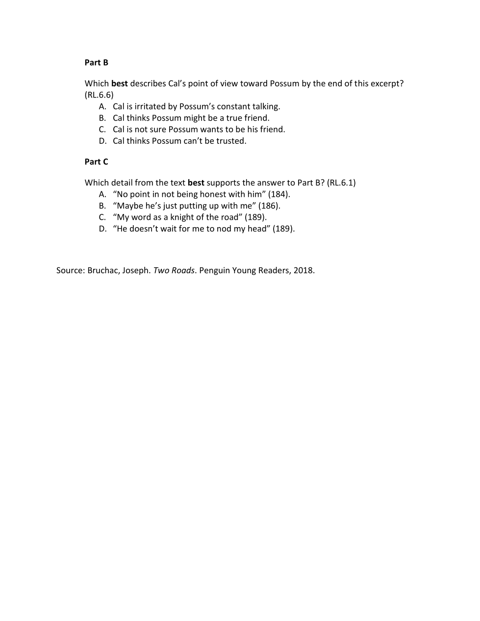 Part B.Which BEST describes Cal's point-of-view toward Possum by the end of this excerpt?