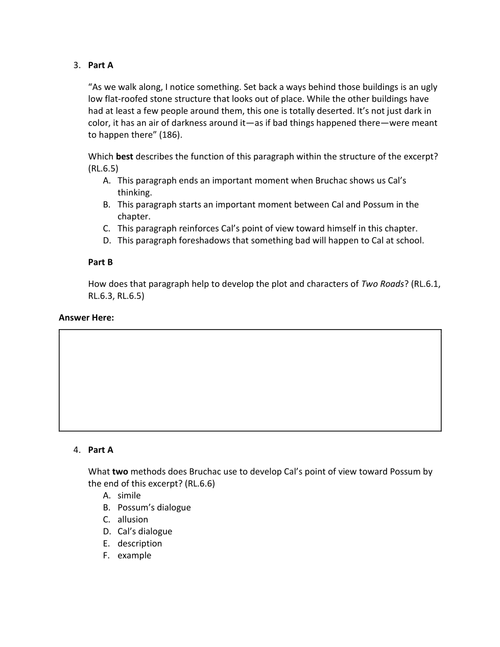 Part B:How does that paragraph help to develop the plot and characters of Two Roads?