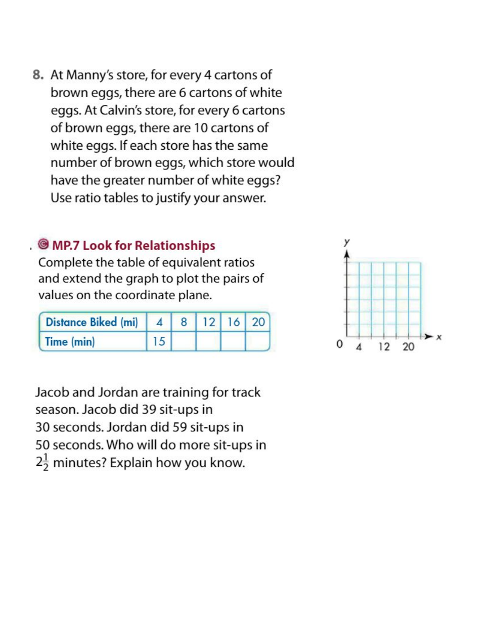 Find the values of the time in minutes compared to the number of miles biked. List with only numbers and spaces.