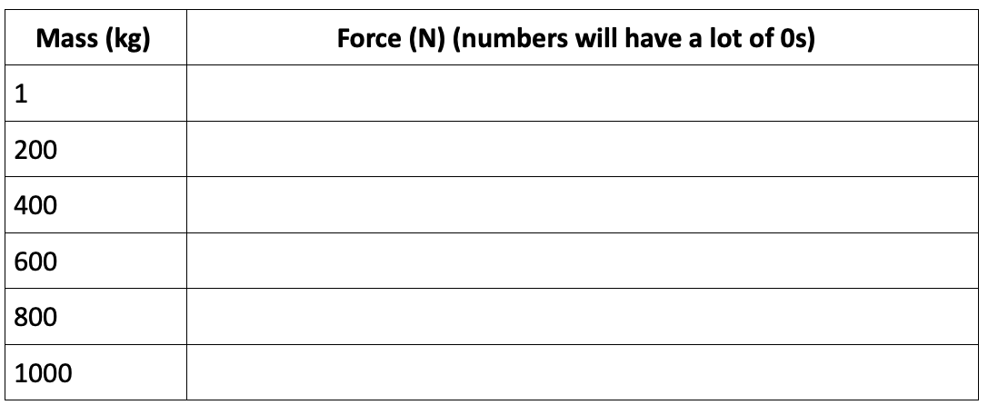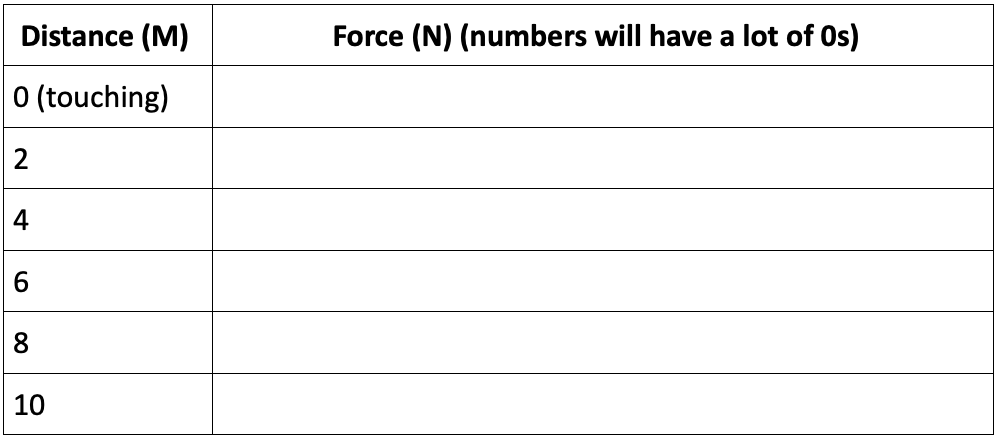4. Set both spheres to the following masses (see table below) and as close to each other as they can possibly be?