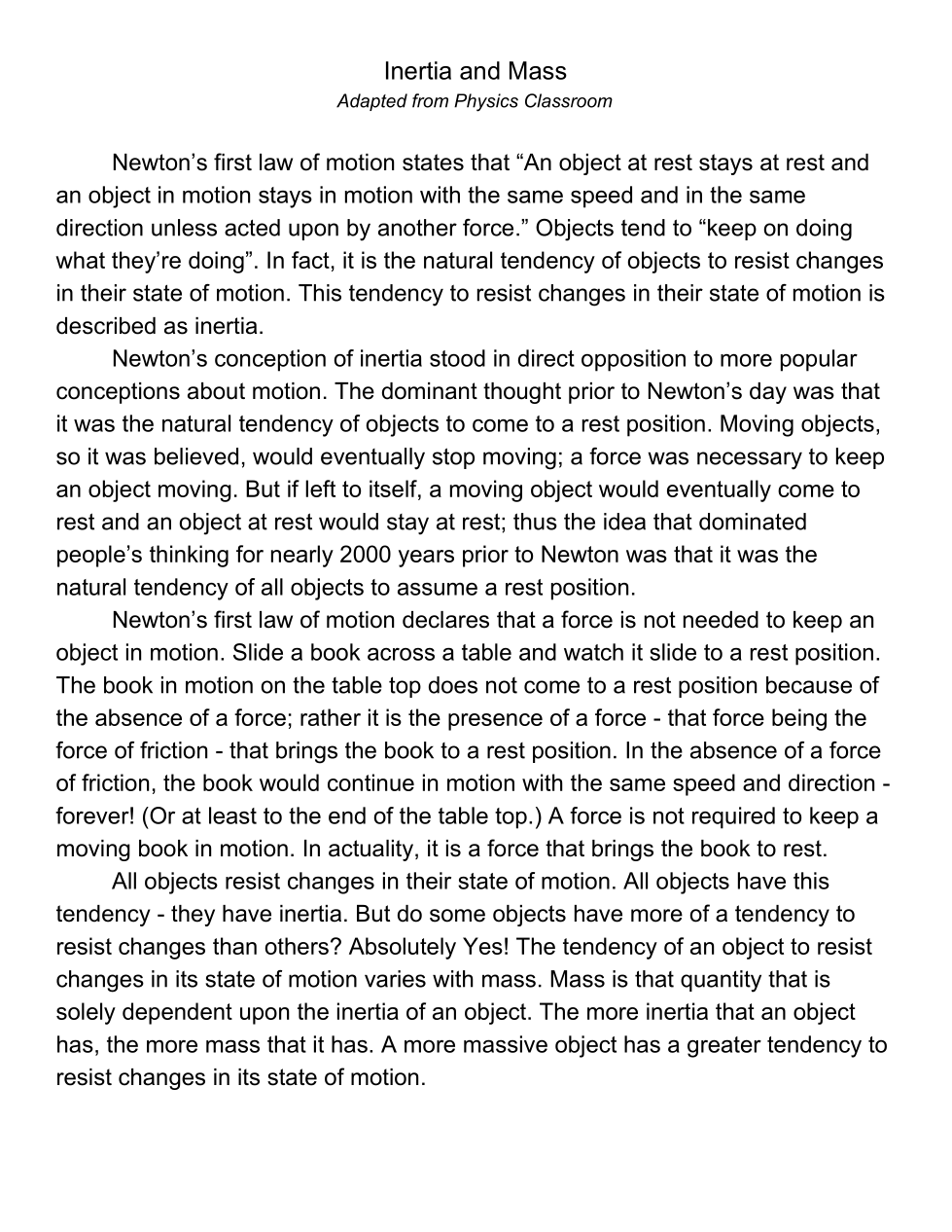 Inertia & Mass