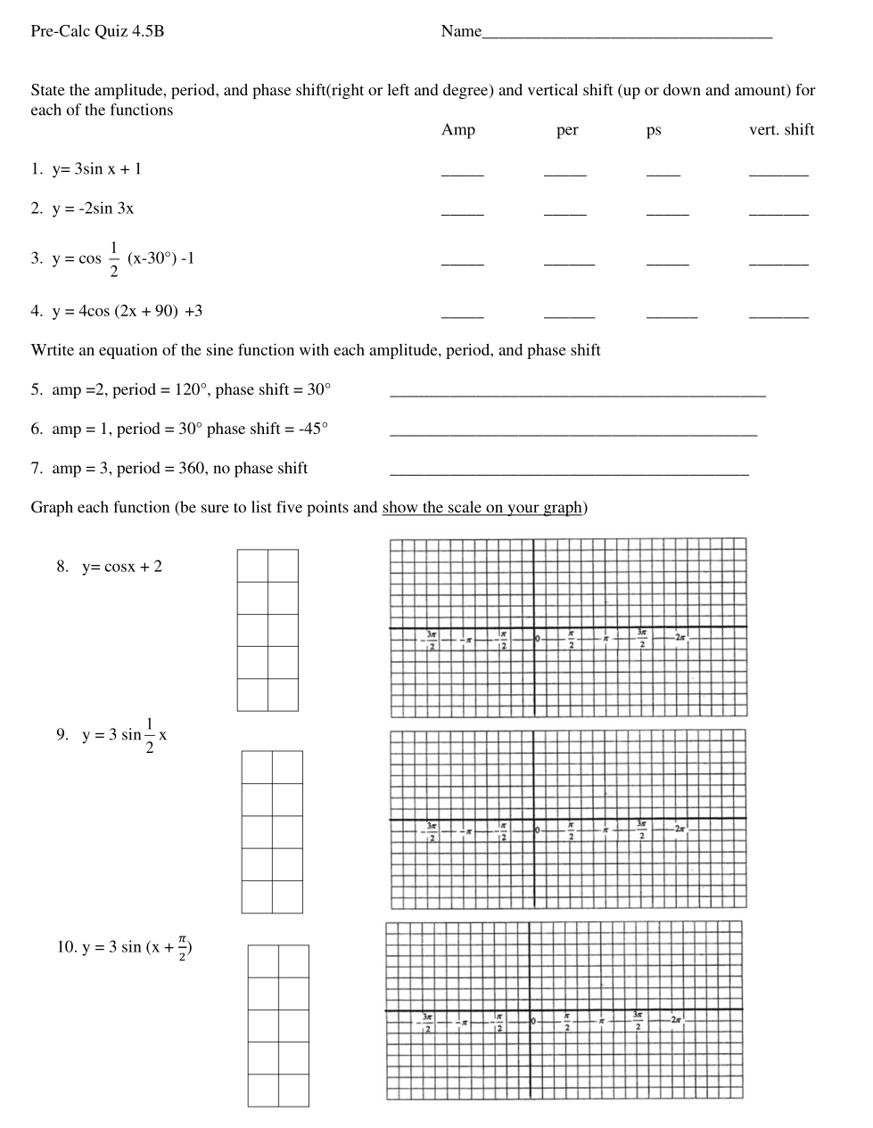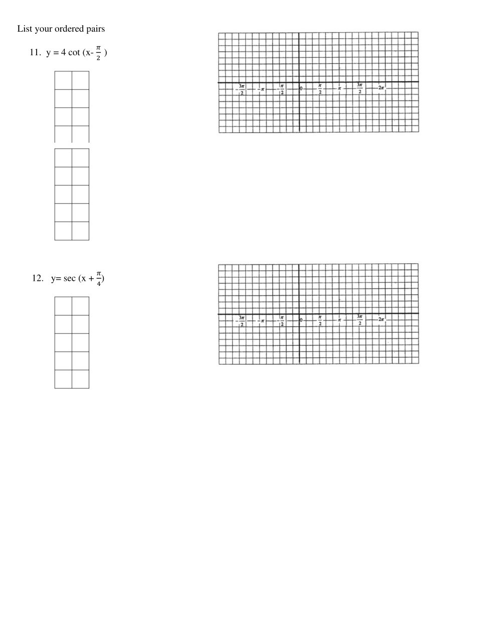 Fill in the chart with the 9 ordered pairs. Type them horizontally. No spaces. Angles should be in radians.
