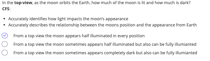 • Complete the Top-View moon diagram indicating how much of the moon is illuminated