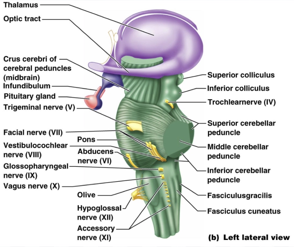 What regions are a part of the brain stem?