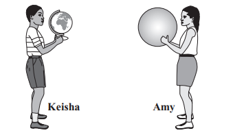 Keisha wants to show Amy what happens during one Earth day. Keisha holds a small globe representing Earth and Amy holds a large ball representing the Sun.
