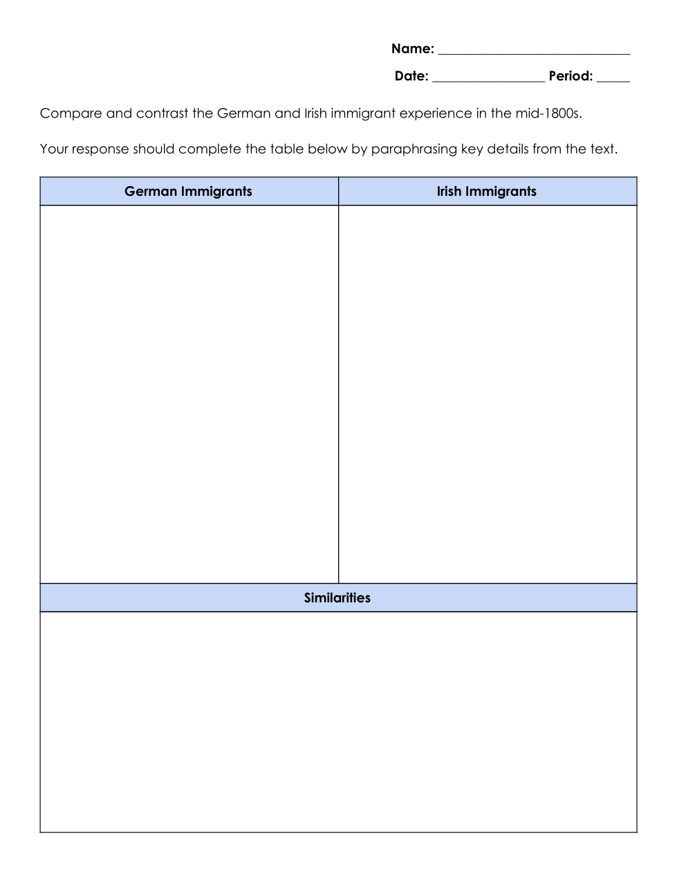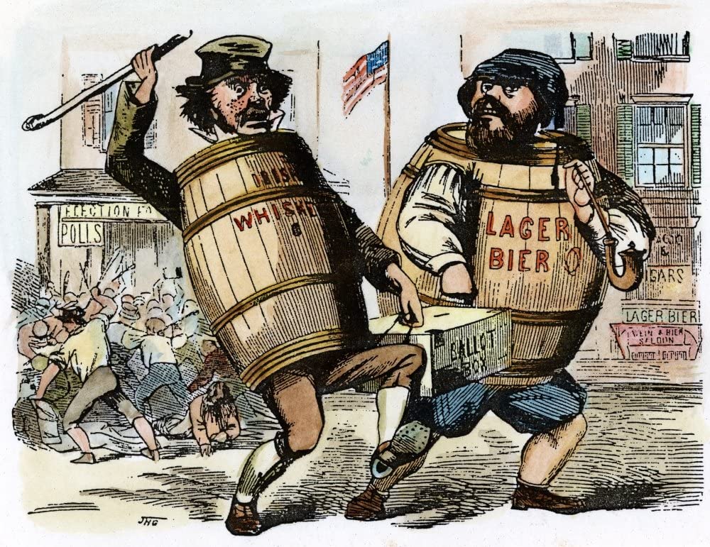 How does the image above demonstrate how Irish and German immigrants were received in the United States in the nineteenth century?