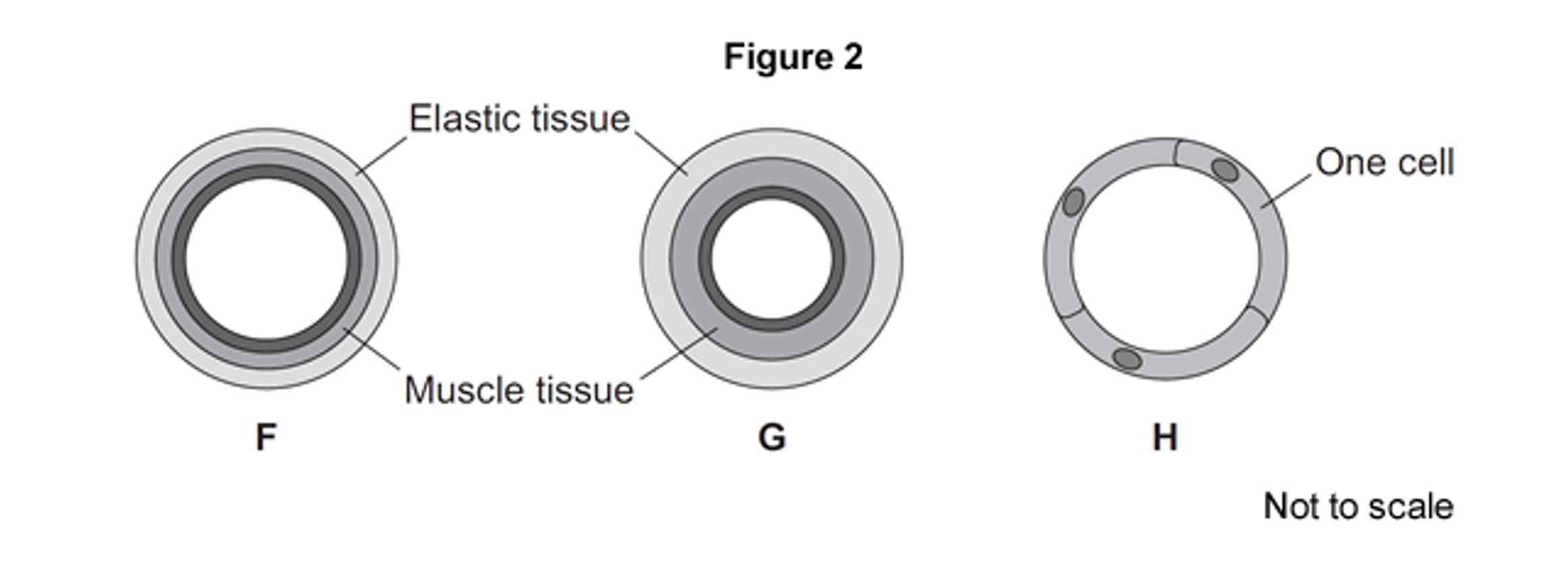 Figure 2 shows three types of blood vessel, F, G and H.What type of blood vessel is F?