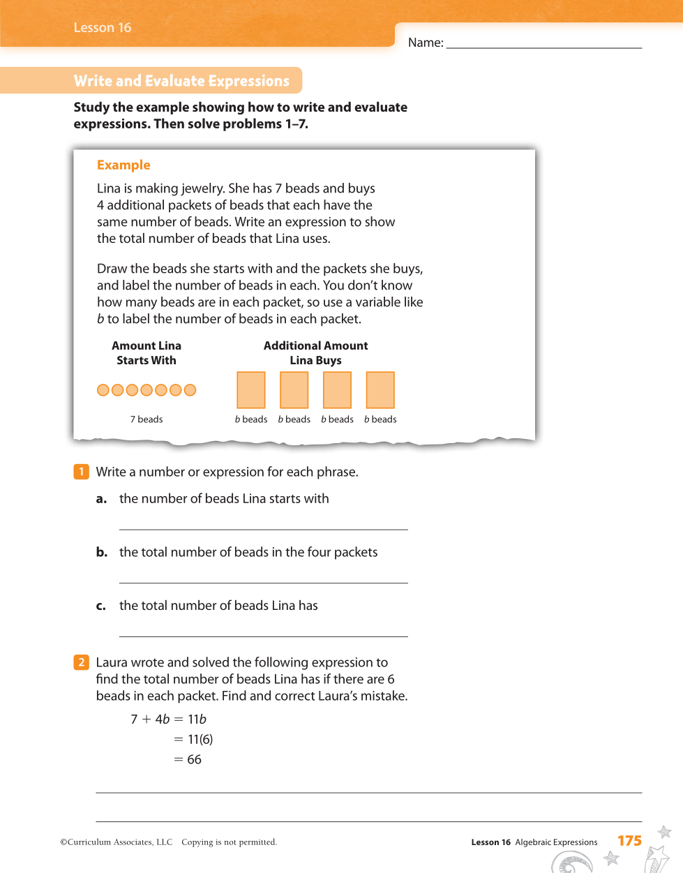 Lesson 16 HW pgs 175 - 176