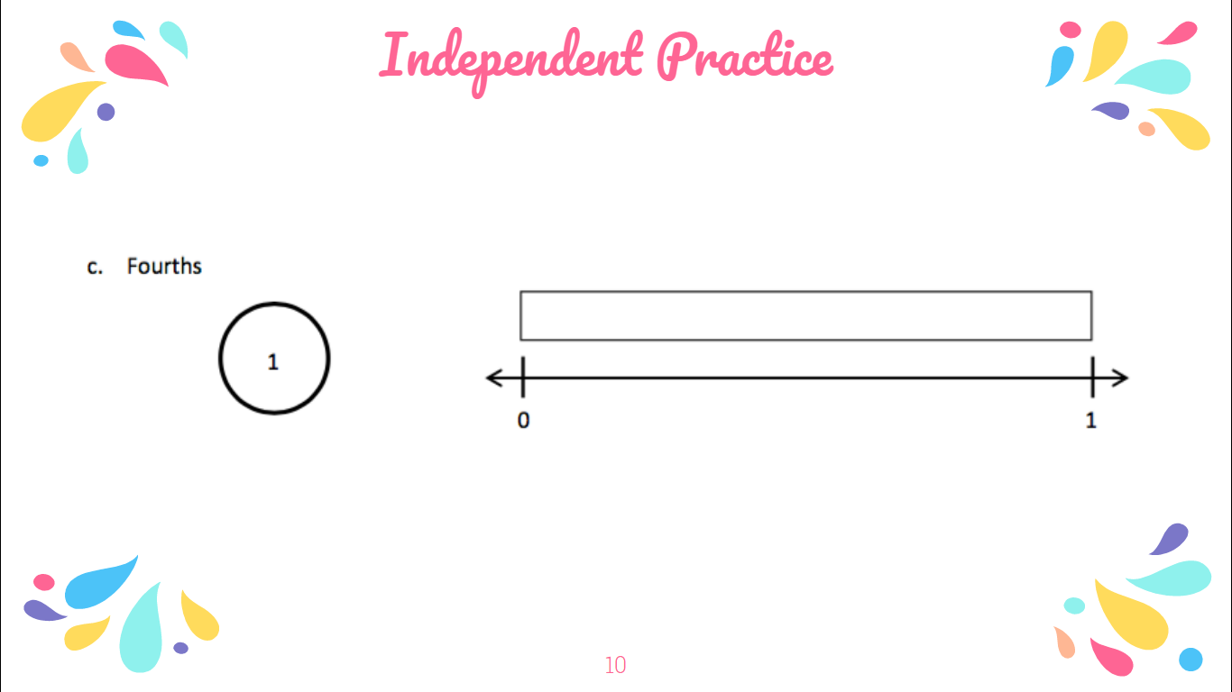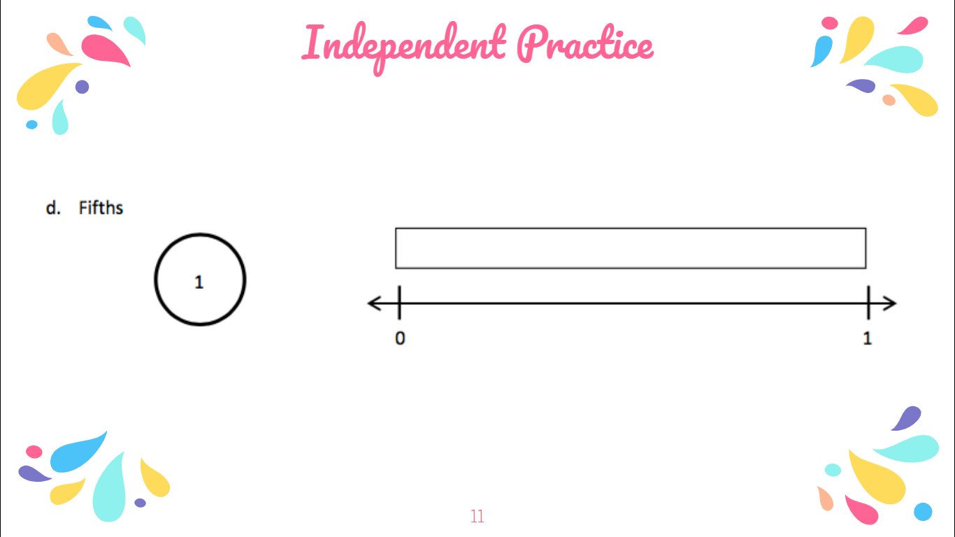 Draw a number bond for each fractional unit. Partition the fraction strip to show the unit fractions of the number bond. Use the fraction strip to help you label the fractions on the number line. Be sure to label the fractions at 0 and 1.