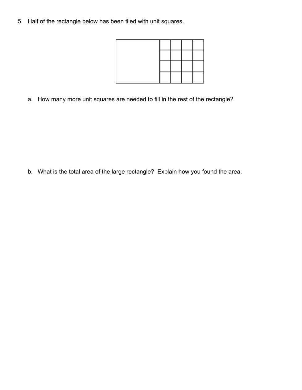 Half of the rectangle below has tiled with unit squares. How many more unit squares are needed to fill in the rest of the rectangle?