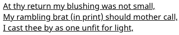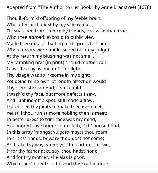 The literary technique that Bradstreet uses in addressing her book directly as her "offspring" is